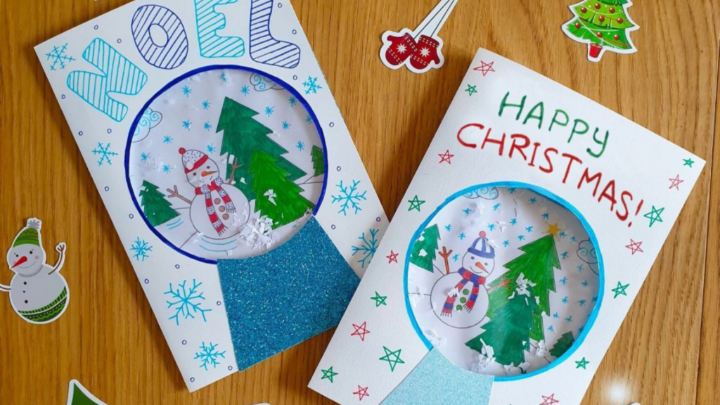 Kalėdinis atvirukas su sniego rutuliu
